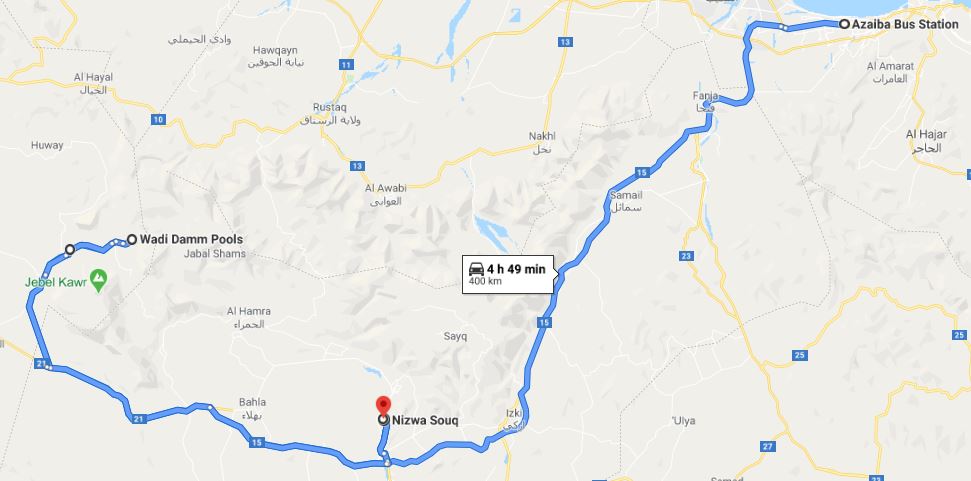 I started my journey from Muscat to Nizwa, then from Nizwa to Al Ayn's Beehive Tombs and Wadi Damm Pools, and back to Nizwa. Total driving was approximately 400 km.